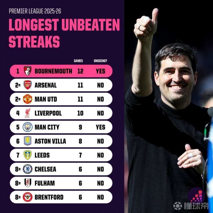 Opta统计本赛季英超连续不败场次最多的球队排名... 发布时间:2026-04-17 01:21:00 | 浏览: 次 直播信号源 体育直播专业赛事解说 免费直播 4k超清直播 美女专业解说(无插件) Opta统计本赛季英超连续不败场次最多的球队排名,阿森纳、曼联、利物浦、切尔西、曼城等球队在列。伯恩茅斯--12*阿森纳--11 曼联--11 利物浦--10 曼城--9*维拉---8 利兹联--7 切尔西--6 富勒姆--6 布伦特福德--6 标签: 体育 PP体育 聚力体st育 英超直播 西甲 亚冠直播 欧冠直播 德甲直播 欧联杯 CBA 篮球直播 WWE直播 UFC直播 体育直播