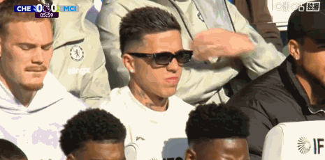 第6分钟,镜头给到场边,仍被队内禁赛的恩佐在替补席观战